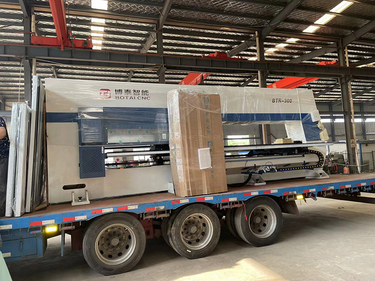 ⑴沖床設(shè)備在出廠前設(shè)計(jì)與加工的模具對(duì)中性差。模位孔對(duì)中性不好,會(huì)使模具在使用過程中發(fā)生碰撞和摩擦,目前國內(nèi)一線水平的數(shù)控沖床生產(chǎn)廠家的模位對(duì)中精度也只能控制在0.02mm,模位對(duì)中精度能夠達(dá)到0.01mm級(jí)別的很少,模具模位的對(duì)中性不好直接損害到模具。⑵模具材料性能差。高速運(yùn)轉(zhuǎn)的過程中,材料不好易發(fā)熱不均導(dǎo)致變形。⑶潤(rùn)滑。在高速使用過程中,模具長(zhǎng)期與模座或者導(dǎo)向孔接觸,模具在上下運(yùn)動(dòng)的過程中,機(jī)床會(huì)發(fā)生一些傾斜振動(dòng),模具與模座或者導(dǎo)向孔摩擦損傷模具以及機(jī)床。⑷使用環(huán)境。充滿灰塵的工作環(huán)境會(huì)使得模具內(nèi)部不干凈,會(huì)導(dǎo)致模具卡死不回彈,甚至將沖頭崩斷,這是非常危險(xiǎn)的。⑸加工板材偏薄或者偏厚。一般數(shù)控沖床的沖壓厚度為0.8~6mm,如若一直在臨近0.8mm或者6mm的情況下工作,模具精度會(huì)受到影響。⑹超負(fù)荷使用,會(huì)影響到模具的使用壽命。⑺加工工序的優(yōu)化不到位。很多用戶在使用數(shù)控沖床時(shí),編寫加工工藝存在問題,使得模具切割面的一半甚至不到一半的切割面接觸到工件,這樣的邊緣加工工藝會(huì)直接導(dǎo)致模具崩刀。一般說來普通模具壽命是30萬次左右,進(jìn)口高速鋼是50萬次左右,影響數(shù)控轉(zhuǎn)塔沖床模具使用壽命的原因中最直接的就是板料越厚、材料越硬,模具壽命就會(huì)越短。如果數(shù)控沖床沖壓的是大孔徑厚板,就需要精確計(jì)算所需要的沖裁力。因此在大工位上沖壓加工比較厚的板料時(shí),需要采用公式⑴:沖壓力(kN)=沖壓孔的周長(zhǎng)(L)×材料厚度(T)×0.345×材料因數(shù)(F)×剪切因數(shù)(S)⑴。模具安裝好后,要邊轉(zhuǎn)動(dòng)轉(zhuǎn)塔沖床,邊觀察上下轉(zhuǎn)塔之間,特別是凹模有沒有高低不平。注:當(dāng)刃口不是斜刃口時(shí),剪切因數(shù)為100%,正方模具40mm×40mm,板厚3.0mm,對(duì)冷軋板進(jìn)行平刃口沖孔。沖壓力(kN)=(40×4)×3.0×0.345×1.2×1.0=198.72kN=19.9t。所需沖壓力如若超出機(jī)器額定公稱力,可通過改變沖頭刃口結(jié)構(gòu)、工位或選用重載模具等方法減小沖壓力,避免出現(xiàn)模具或機(jī)器損壞。目前,很多單機(jī)已經(jīng)滿足不了行業(yè)的需求,自動(dòng)化在機(jī)械行業(yè)里所占的比重日益增多。我公司沖床配有自動(dòng)上下料生產(chǎn)線,主要包含沖床自動(dòng)上料裝置,能夠取代人工進(jìn)行自動(dòng)上料,以合理的成本為客戶提供自動(dòng)化沖裁加工解決方案,市場(chǎng)需求量大,符合行業(yè)發(fā)展趨勢(shì)。整體采用桁架結(jié)構(gòu),負(fù)載能力強(qiáng),定位精度高,速度快,尤其適用于大幅面板材的自動(dòng)上料。該板材自動(dòng)化生產(chǎn)線主要由一臺(tái)EP20數(shù)控轉(zhuǎn)塔沖床、桁架式上料機(jī)械手、板料工作臺(tái)等部分組成。